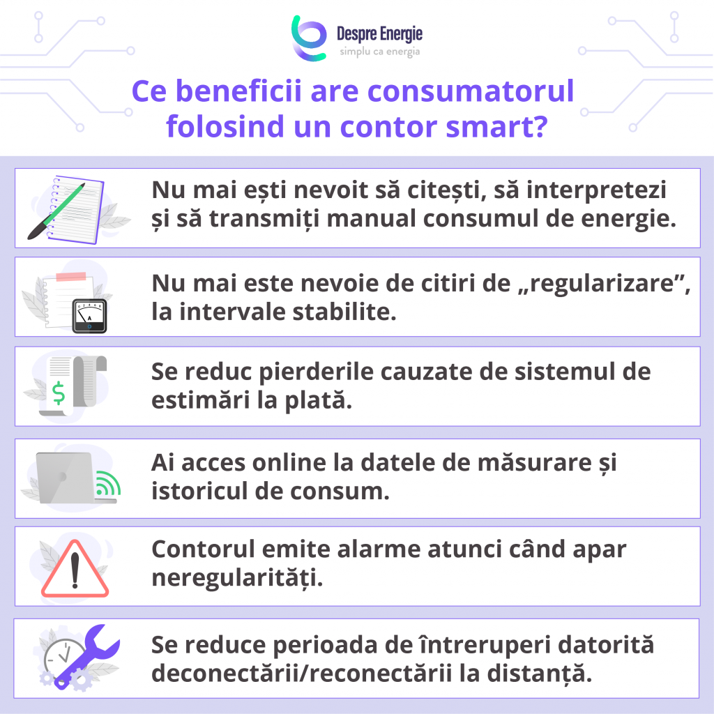 Beneficiile aduse de aceste sisteme de măsurare inteligente motivează decizia operatorilor de distribuție de a le instala în toate punctele de consum, pentru a înlocui vechile contoare.