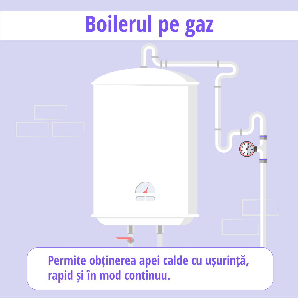 Este un dispozitiv modern, performant, automatizat și sigur pentru utilizare. Permite obținerea apei calde cu ușurință, rapid și în mod continuu. Gazul fiind mai ieftin decât electricitatea, dacă optezi pentru un boiler pe gaz, vei reduce și costul facturii lunare de energie. Costul unui astfel de boiler este relativ mic, ceea ce îl face foarte accesibil. Trebuie totuși să ții cont de faptul că montarea acestuia se face de către o persoană autorizată. De asemenea, este necesar ca încăperea în care va fi montat să corespundă cerințelor prevăzute.