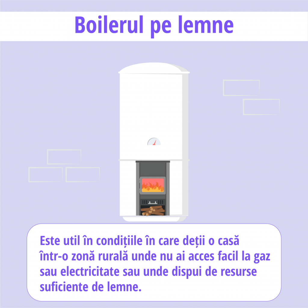 Este util în condițiile în care deții o casă într-o zonă rurală unde nu ai acces facil la gaz sau electricitate sau unde dispui de resurse suficiente de lemne. Lemnele arse în focar vor produce căldura necesară pentru a încălzi apa. De obicei aceste boilere au o capacitate mai mare, astfel cantitatea de apă pe care o pot încălzi fiind mai mare. Acesta cuprinde o sobă mică și boilerul propriu-zis. Inconvenientul apare din faptul că durează ceva timp până apa ajunge la temperatura dorită.