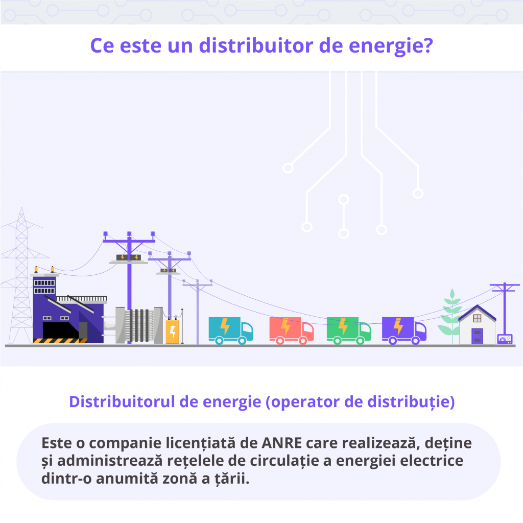 Distribuitorul de energie sau operatorul de distribuție este o companie, licențiată de ANRE (Autoritatea Națională de Reglementare în domeniul Energiei) care deține, prin concesiune, rețelele de circulație a energiei electrice, dintr-o anumită zonă a țării. Rețeaua de distribuție, numită și infrastructura prin care circulă curentul electric, reprezintă stâlpii de tensiune înaltă, medie și joasă, cabluri aeriene și subterane, transformatoare, contoare, sisteme de telecontrol și altele.